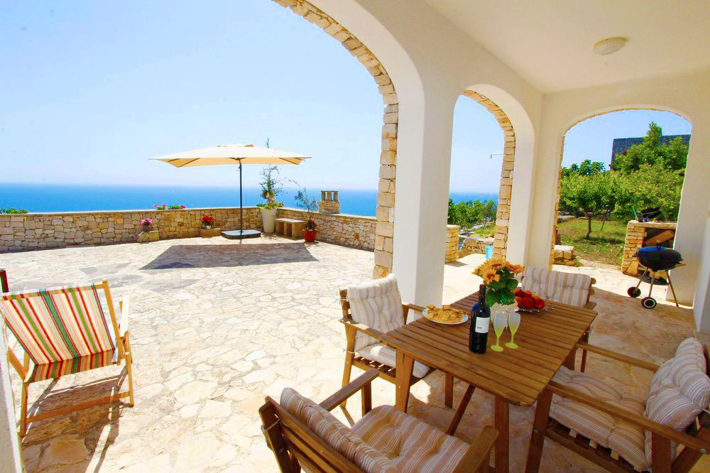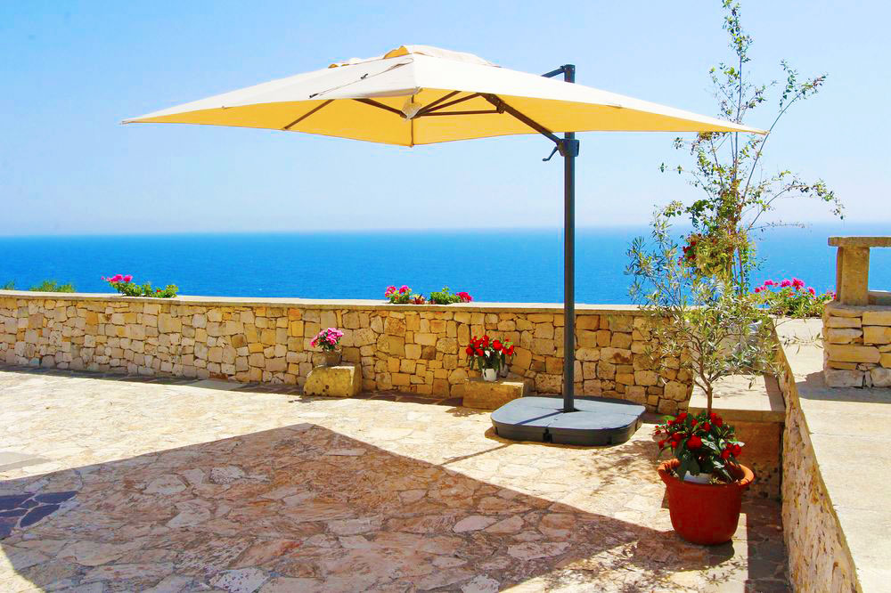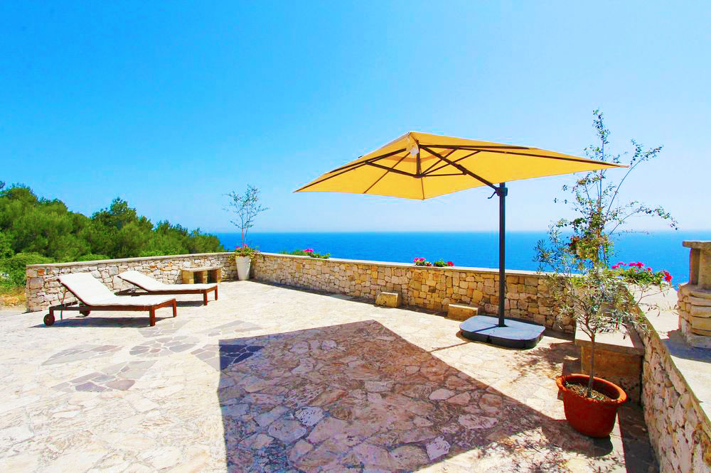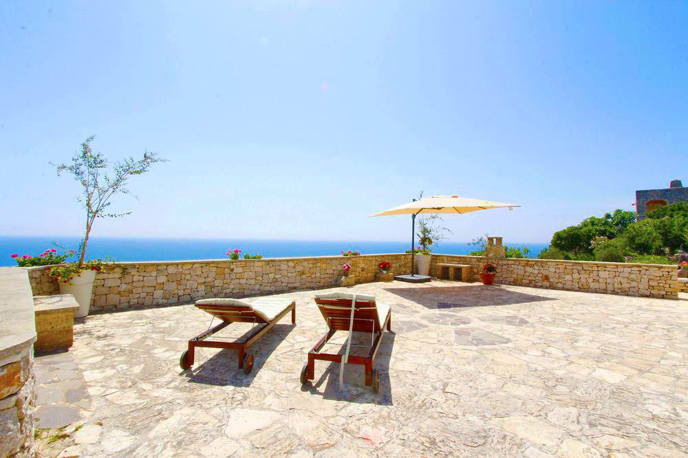 La terrazza esterna è di oltre 100 mq, con una vista panoramica da film: nei giorni di tramontana si vedono addirittura le coste greche!